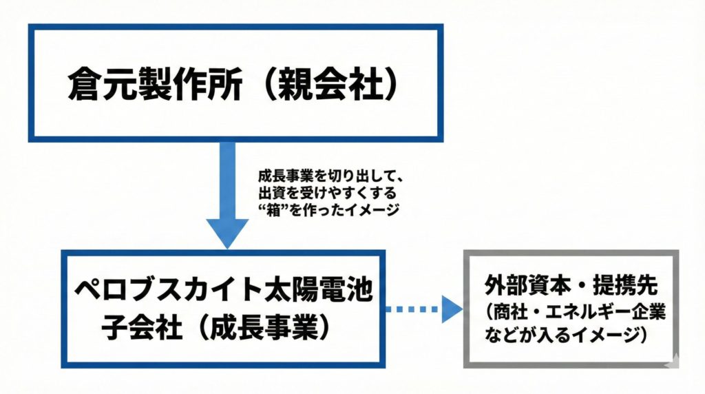 ペロブスカイト事業を子会社化し、そこで外部資本を受け入れやすくする狙いは明確です。