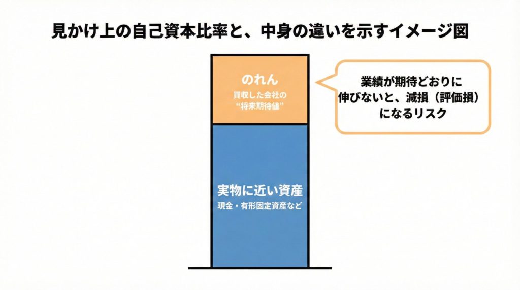 ただし、純資産の中身には前述の「のれん」が多く含まれています。