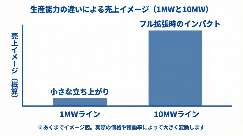 • しかし、最初に立ち上がる1MWラインだけでは売上は1〜2割増える程度 にとどまる