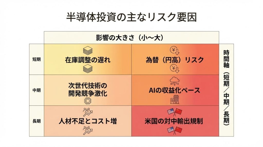 - かつての「光ファイバー投資バブル」のように、一時的な投資縮小が起きるリスク