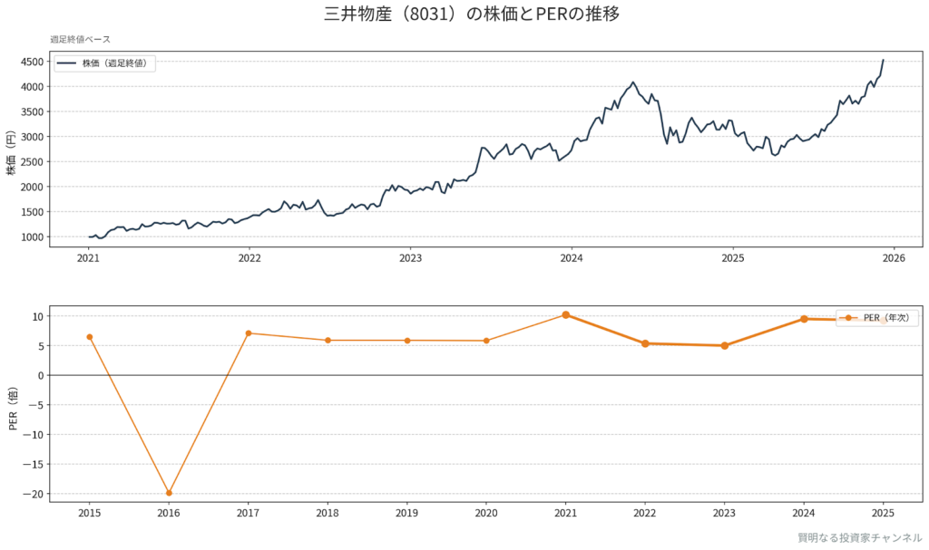 - PER:三井物産は約15倍と、伊藤忠に近い評価水準