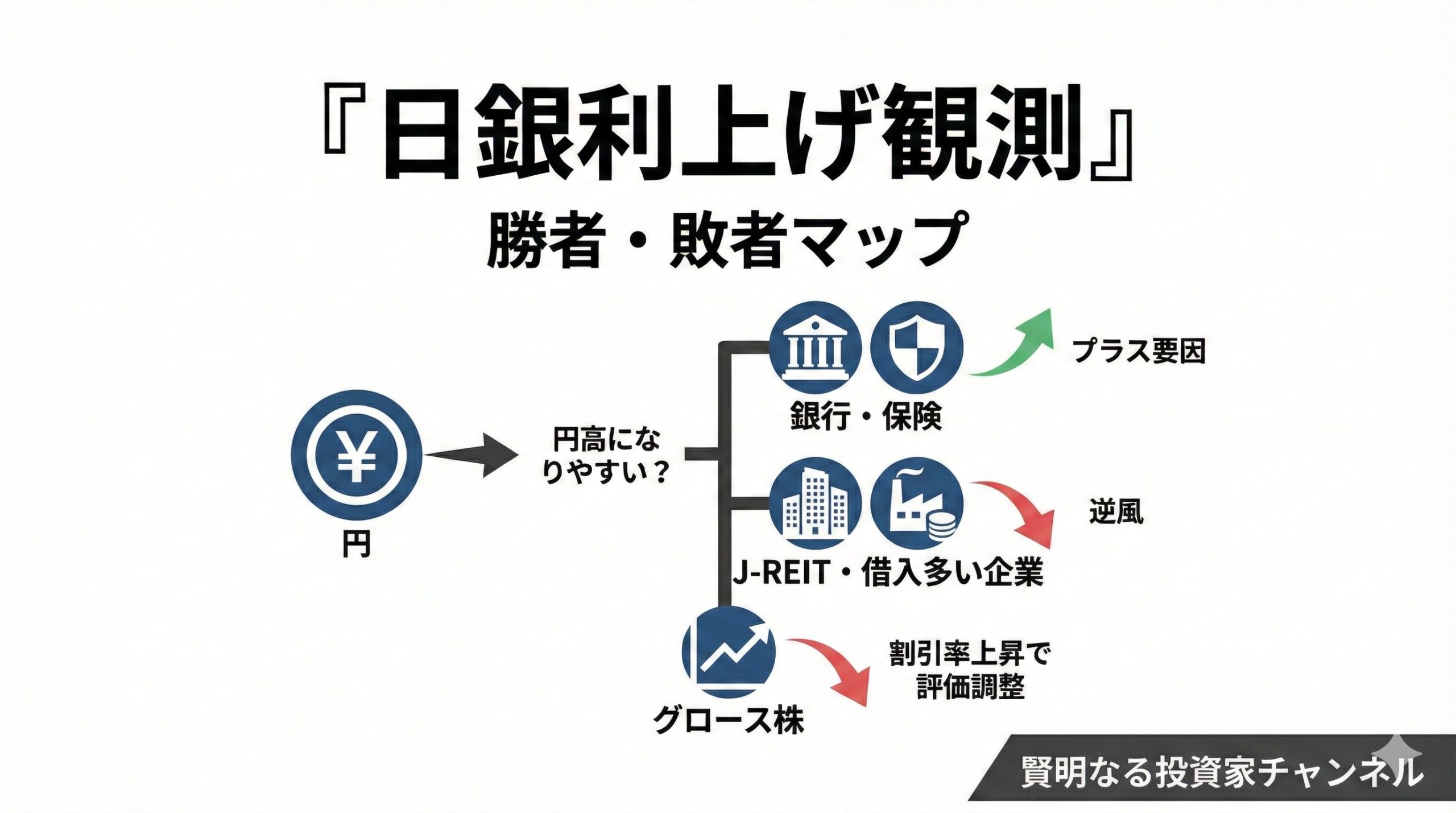ここから先の相場で大切なのは、「利上げ=株安」と決めつけず、金利上昇で得をする資産と、構造的に不利になる資産を分けて考えることです。