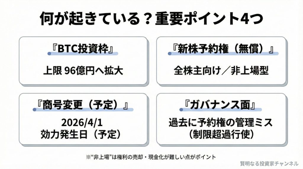 まとめ:これは“事業成長株”というより「BTC連動+ファイナンス色」が強い局面