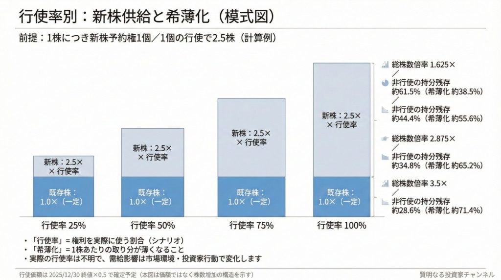 - 希薄化を許容できるか:行使しない場合、相対的な持分が薄まりやすい