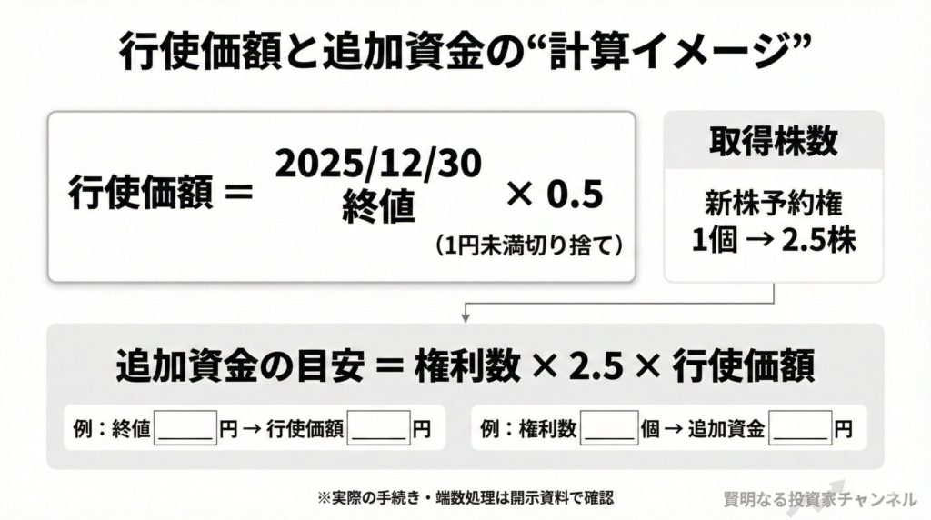 - 追加資金の目安=(保有する権利数)×(2.5株)×(行使価額)