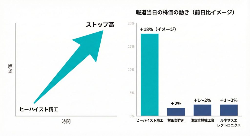 第2章 株式市場の初期反応:ヒーハイスト精工が象徴的な動き