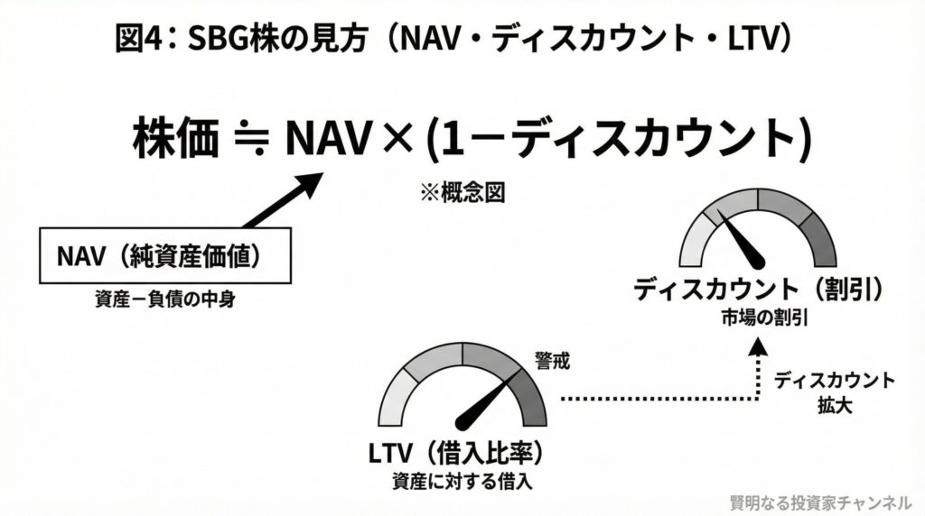SBGは典型的に、NAV(純資産価値)とNAVディスカウントで語られやすい銘柄です。