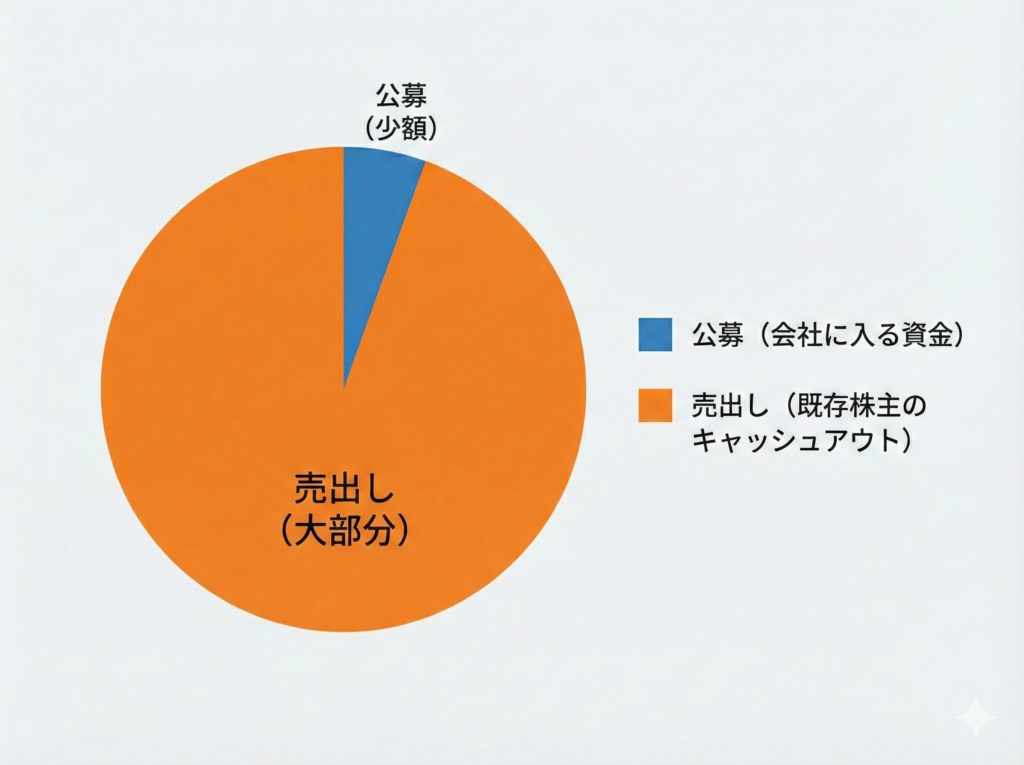 売出し比率が極端に高いIPOは、どうしても「上場時点で既存株主が大きくキャッシュアウトする構図」になります。