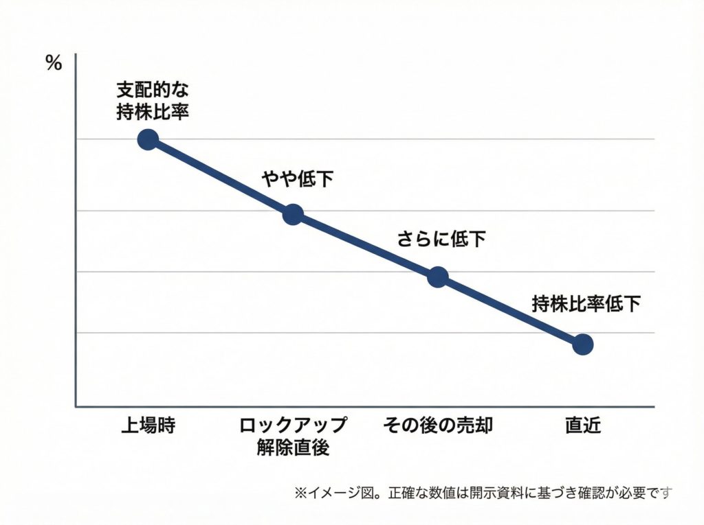 「解除後に大株主がどう動くか」が将来の需給リスクとして意識される構造でした。