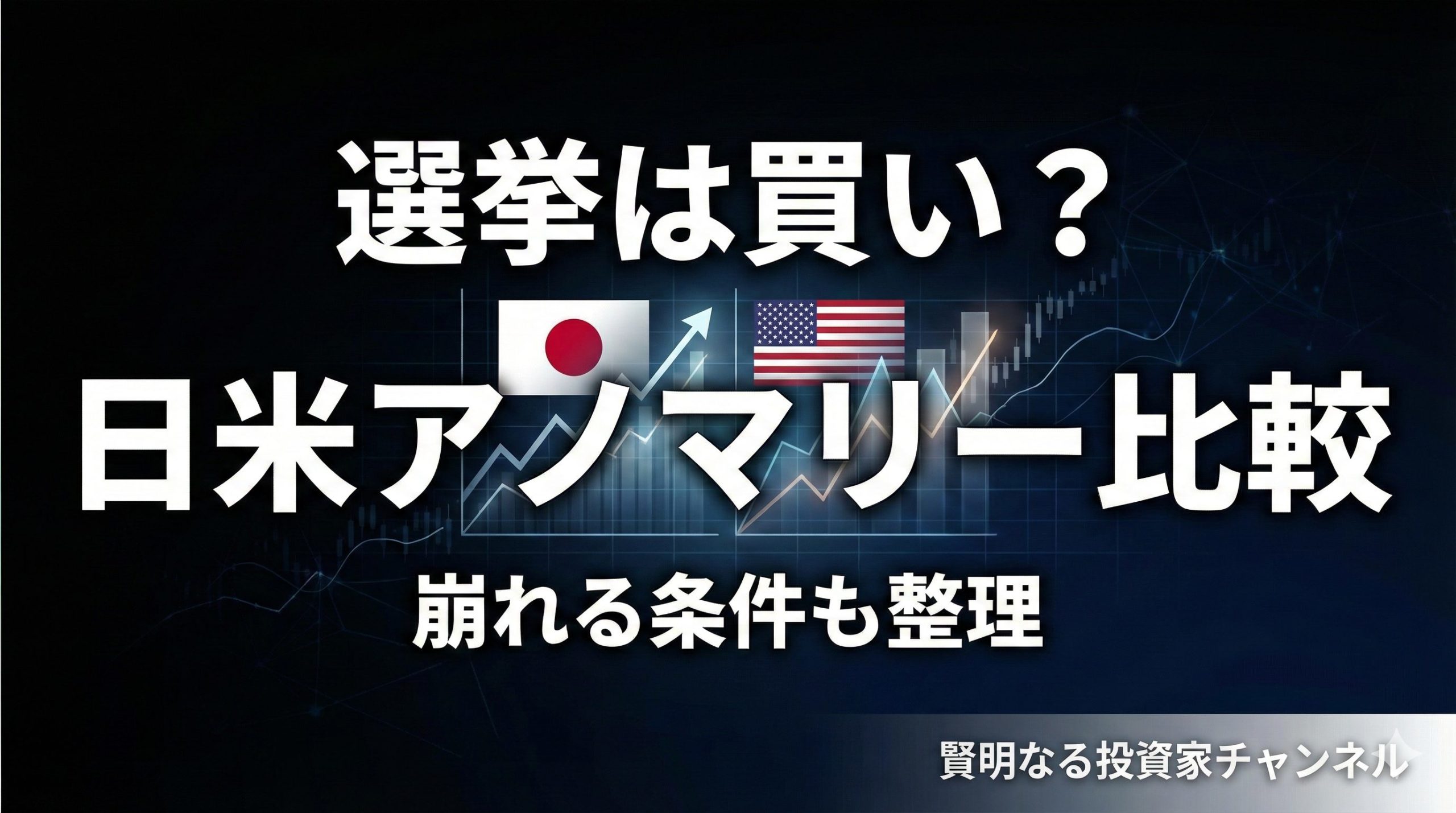 結局のところ、「選挙要因」は相場を動かす要因の一つに過ぎません。金利・為替・景気・政策といった上位要因が逆向きなら、アノマリーは簡単に崩れます。