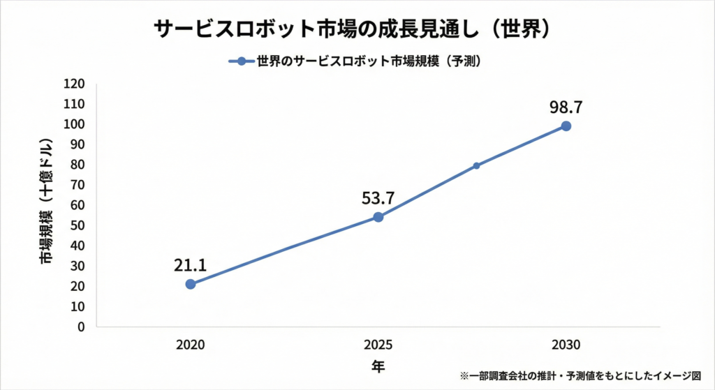 配膳・警備・清掃などを含むサービスロボット/フィジカルAI関連市場は、