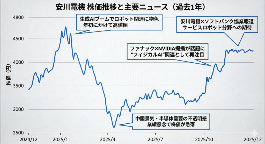 後半:業績底打ち感と「フィジカルAI」テーマでV字回復