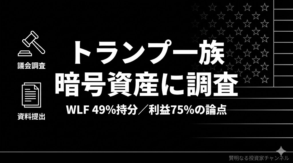 米国で、トランプ一族(周辺)の暗号資産ビジネスをめぐり、下院委員会側が情報・資料提出を求める書簡を公開し、調査の動きが報じられています。本記事では、個人投資家向けに「何が問題視されているのか」「市場リスクはどこに出やすいのか」を、できるだけ噛み砕いて整理します。