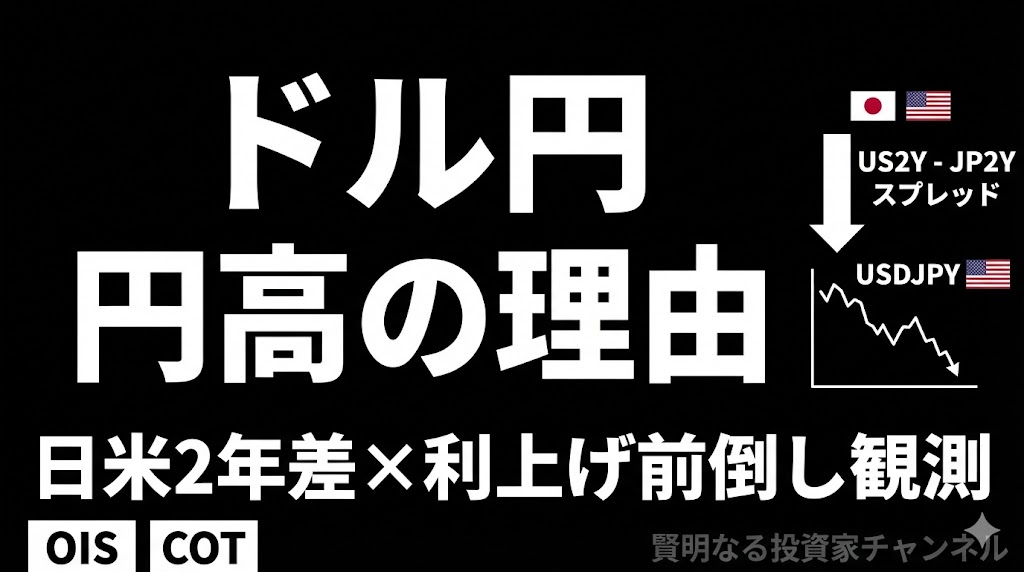 ドル円が円高方向に急に動くと、「何が起きたのか」をニュース単体で説明したくなります。しかし実際の相場は、金利見通し(特に短期)ポジションの偏りが重なった瞬間に、想像以上の値幅が出ることがあります。